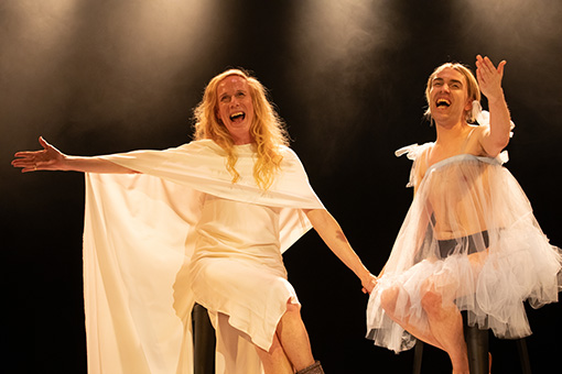 Giselle: Remix transports the audience through an emotional journey following the main character’s unrequited love story. Rapport is created from the outset through comical interaction with the audience, in time brilliant lip-synching, vibrant facial expressions and exaggerated reactions to the narration which really tells the story.